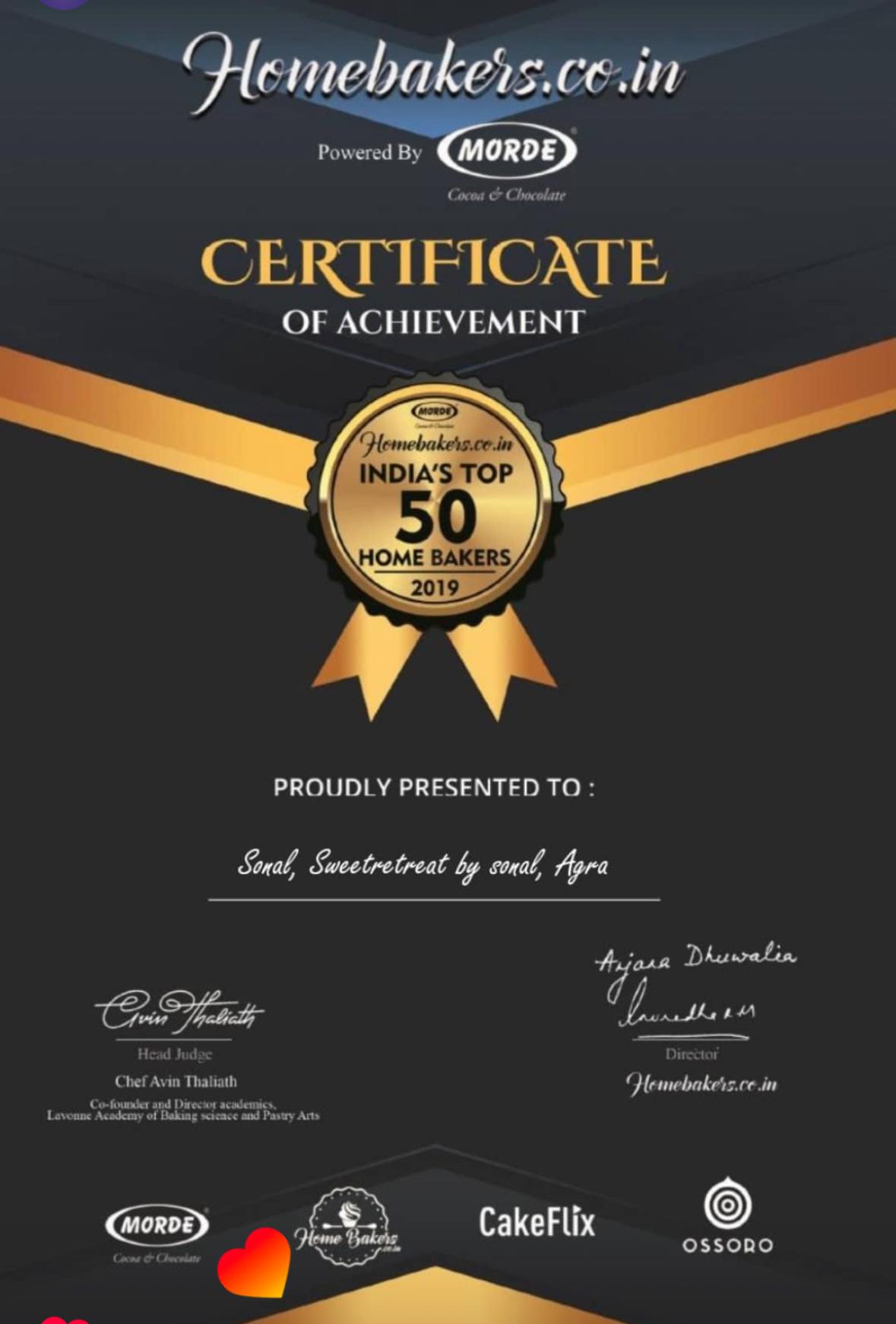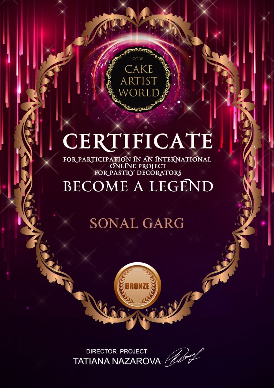 Winner at Chocolate Day Contest, Win 2nd position'World Super Gorgeous Cake by Amazing Cake Ideas, paticipated in India 's Book of Records Event and many more.